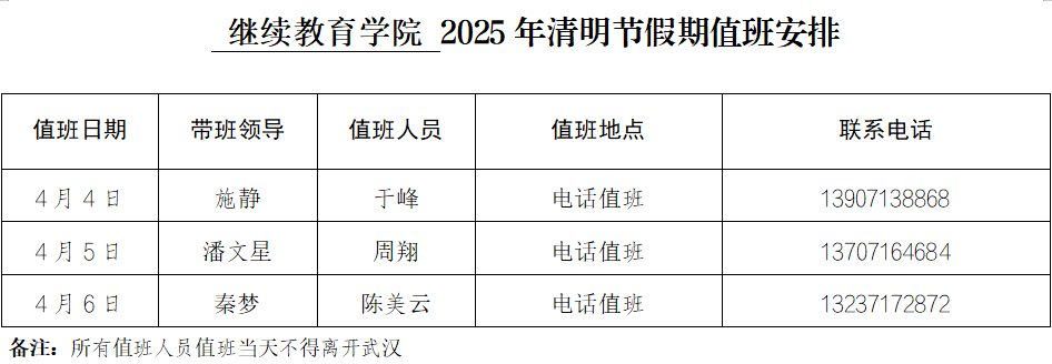 继续教育学院2025年清明节假期值班安排-凯发网址