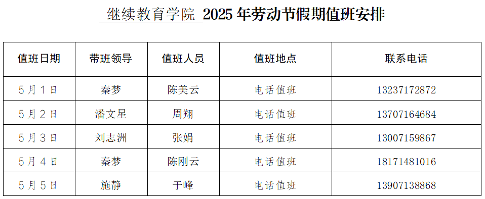 继续教育学院2025年劳动节假期值班安排-凯发网址