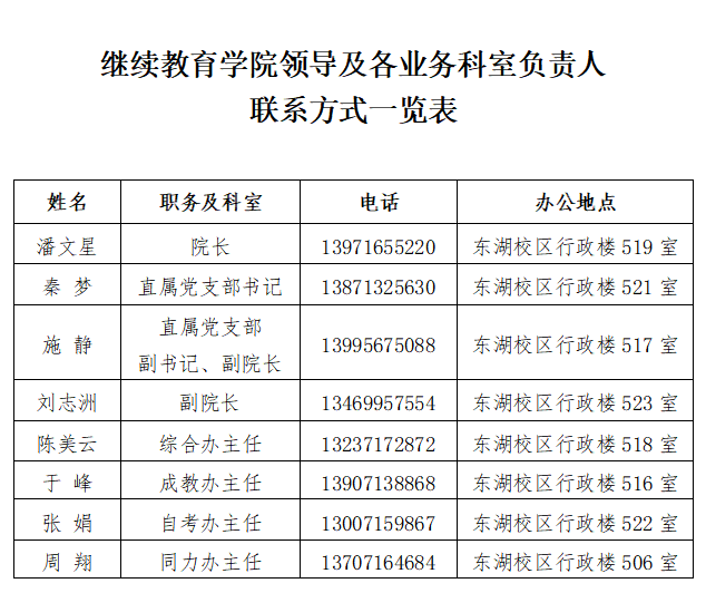 继续教育学院领导及各业务科室负责人凯发网址的联系方式一览表-凯发网址