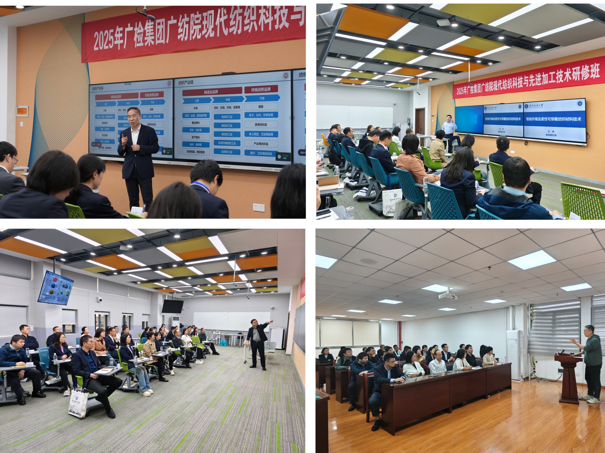 4月11日至13日,由武汉纺织大学继续教育学院承办的“2025年广检集团广纺院现代纺织科技与先进加工技术研修班”在阳光校区成功举办。本次研修班通过专题授课、座谈交流和参观走访等形式,深入探讨了现代纺织科技的前沿技术和发展趋势。